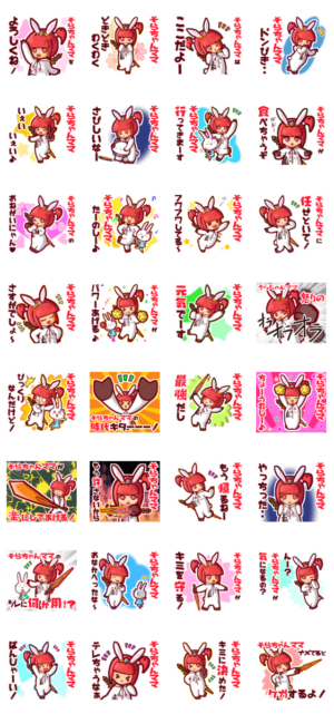 ゆっけ。が贈る【そらちゃんママ】用名前スタンプ12です。《きぐるみじょし》01「うさぎなミコちゃん」と親友の「ガルうさ」です。