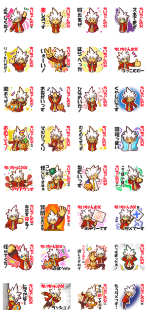 ゆっけ。が贈る【ちいちゃんの父】用名前スタンプ11です。ゆっけ。のキャラクター「歌好きユーシャくん」と友達の「ヒロねこ」です。