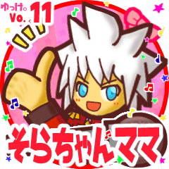 ゆっけ。が贈る【そらちゃんママ】用名前スタンプ11です。ゆっけ。のキャラクター「歌好きユーシャくん」と友達の「ヒロねこ」です。