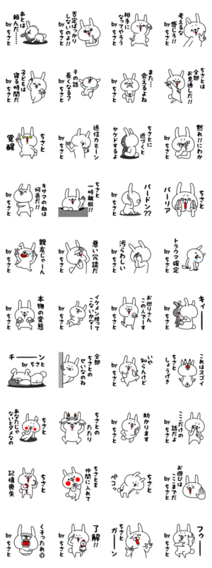 うぇーいうさぎの全力スタンプ第13弾。中2病編。全力でうざい全力でおちょくる「チサト」専用名前スタンプ。かわいいウサギで使いやすいデカ文字タイプ。