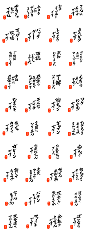 馬上さん用死語入り筆文字敬語 スタンプ画像一覧