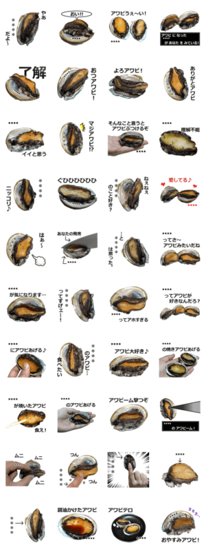 あわびの実写カスタムスタンプです。超高画質アワビをどうぞ。名前や色んな言葉を入れてみよう!鮑大好き♪貝類最強!写真食べ物スタンプシリーズ。竹野チコ より発売