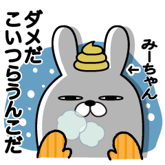 みーちゃんが使うスタンプうんこ編冬です。みやこ,みか,みわ,みな,みう,みき,みさき,みなみ,みゆき,みづき,みどり,みらい,みちこ,みえ,みおなどみーちゃんが使えるスタンプ