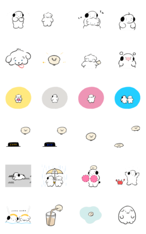 おだやかで健康な犬、ココモとスモアのアニメーションスタンプ第2弾ができました!小さくてフニフニな犬めだかちゃんも一緒です。穂の湯 より発売