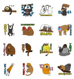 日本モンキーセンターで暮らす動物たちがダサかわいいスタンプになりました!お金がないので飼育員がデザインしています。職員も使いたいので仕事OKな丁寧語です。