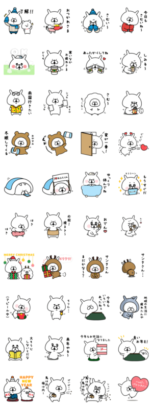 ゆるうさぎの冬のスタンプ第3弾!寒い冬に毎日使えるスタンプはもちろん!クリスマス・年末・お正月・節分・バレンタインまで冬のイベントで使えるスタンプの詰め合わせ!chococo より発売