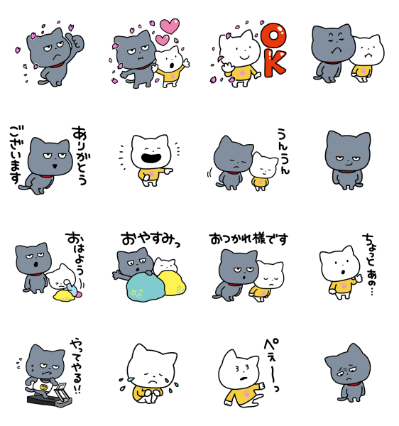 にしむらゆうじさんの人気キャラクター「わるめのねこ」と「さえないこねこ」が一緒になった豪華スタンプセット☆