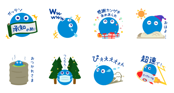 びっぷるはビッグローブのマスコットキャラクター。水滴のような丸い姿のキャラクターで、「水の惑星」をモチーフとしています。