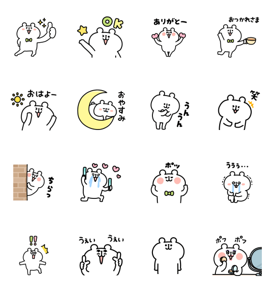 ゆるくまはイラストレーター・myさんの代表作。その名の通りゆるい雰囲気が特徴のクマのキャラクターです。シンプルで使いやすいスタンプは幅広い世代に支持されています。