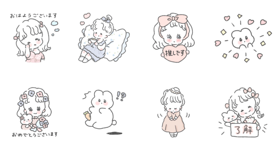 人気イラストレーター・Cahoさんが描くゆるかわ女の子とうさぎのスタンプセット☆