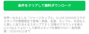 下のリンクからLINEを起動させて、「条件をクリアして無料ダウンロード」をタップ。