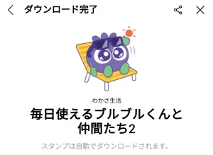 ダウンロードボタンをクリックするとスタンプのダウンロード画面まで直接アクセスできますので、ダウンロード方法を参考にしながらスタンプをゲットしてください。