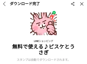 5月6日に出た無料スタンプ、「LINEショッピング」の「無料で使える♪ピスケとうさぎ」をダウンロード方法やこの無料スタンプを実際にゲットしてトークに使う方法を解説しています