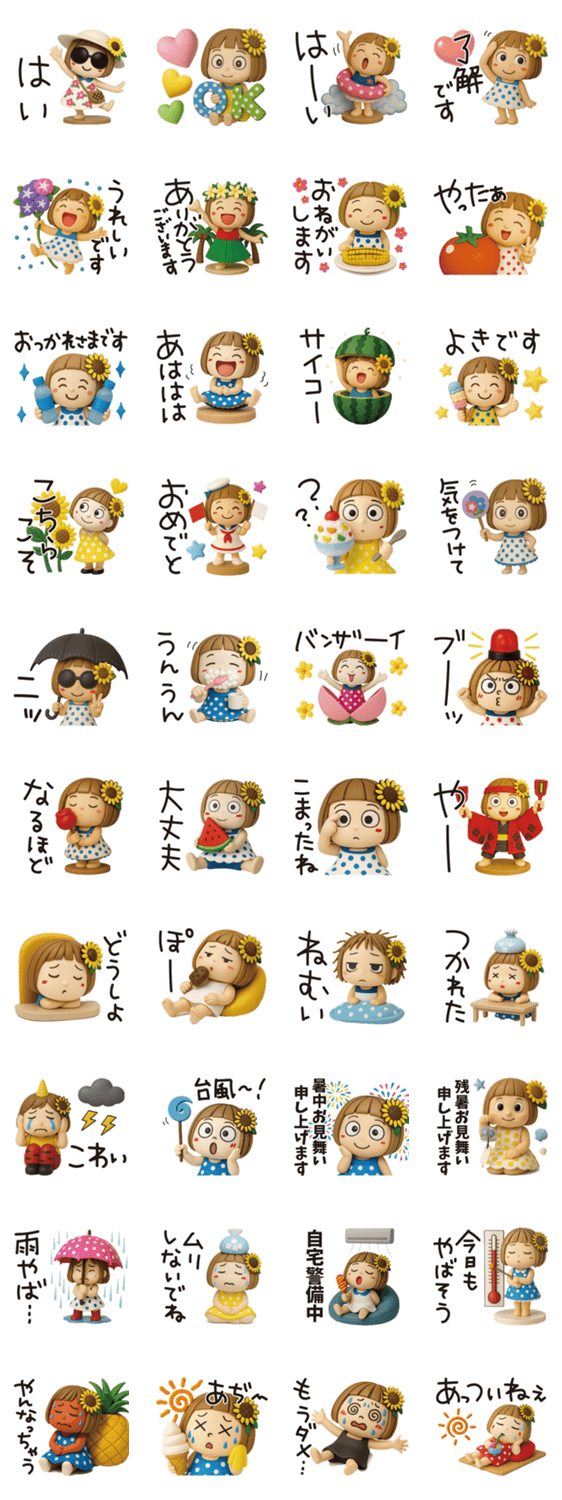 はな子✿3Dちびドールver.(夏) スタンプをダウンロード↓↓