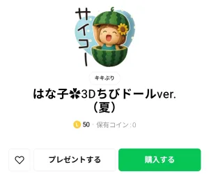 はな子✿3Dちびドールver.(夏) スタンプをダウンロード↓↓