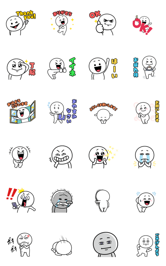 本スタンプはスタンプクリエイター・セイコウさんのオリジナルスタンプ。シンプルな見た目の丸人間が主役のスタンプです。シンプルな見た目ながら豊富な表情とコミカルな動きで感情を表現します。