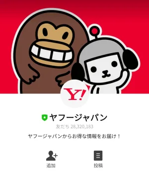 下のリンクからLINEを起動させて、「ヤフージャパン」のアカウントと友だちになると無料でスタンプがGETできます☆