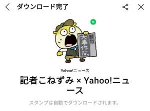下のリンクからLINEを起動させて、「Yahoo!ニュース」のアカウントと友だちになると無料でスタンプがGETできます☆