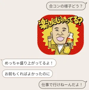 「楽しんじゃってる?」など、おなじみの決めゼリフを盛り込んだコミカルなスタンプです♪