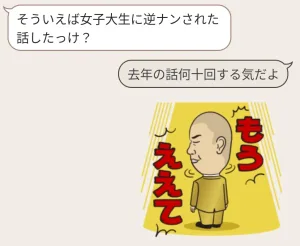 本スタンプはエネルギー飲料・リアルゴールドのと芸人・ナダルさんのコラボスタンプ。先輩への失礼な態度や自己中心的なエピソードが暴露され、“クズ芸人”としてブレイクしました。また独特の悲しげな表情やテンションの高いボケで人気です。