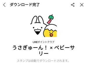 6月17日に出た無料スタンプ、「LINEポイントクラブ」の「うさぎゅーん! × ベビーサリー」をダウンロード方法やこの無料スタンプを実際にゲットしてトークに使う方法を解説しています