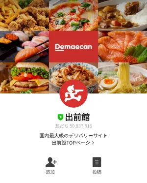 下のリンクからLINEを起動させて、「出前館」のアカウントと友だちになると無料でスタンプがGETできます☆