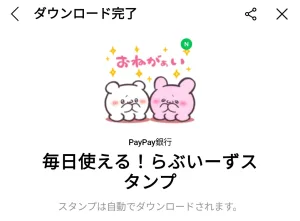 下のリンクからLINEを起動させて、「PayPay銀行」のアカウントと友だちになると無料でスタンプがGETできます☆