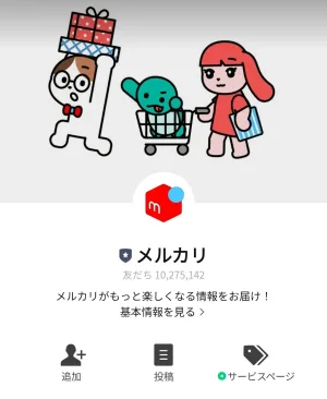 下のリンクからLINEを起動させて、「メルカリ」のアカウントと友だちになると無料でスタンプがGETできます☆
