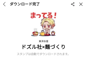 7月22日に出た無料スタンプ、「東洋水産」の「ドズル社×麺づくり」をダウンロード方法やこの無料スタンプを実際にゲットしてトークに使う方法を解説しています