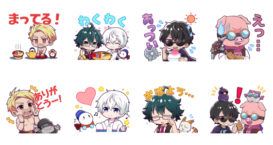 こちらはぼんじゅうるさんとおおはらMENさんがメインのスタンプ。各メンバーをモチーフにしたかわいいおともだちも一緒に登場しています。