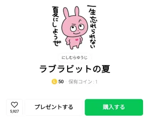 7月21日に出たスタンプ、「にしむらゆうじ」の「ラブラビットの夏」のダウンロード方法やこのスタンプの特徴を解説しています。