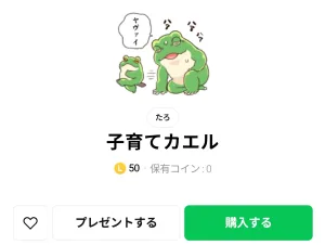 7月27日に出たスタンプ、「たろ」の「子育てカエル」のダウンロード方法やこのスタンプの特徴を解説しています。