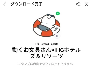7月29日に出た無料スタンプ、「IHG Hotels & Resorts」の「動くお文具さん×IHGホテルズ&リゾーツ」をダウンロード方法やこの無料スタンプを実際にゲットしてトークに使う方法を解説しています