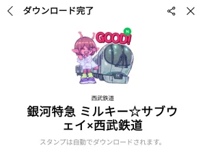 【銀河特急 ミルキー☆サブウェイ×西武鉄道 無料スタンプダウンロード方法】