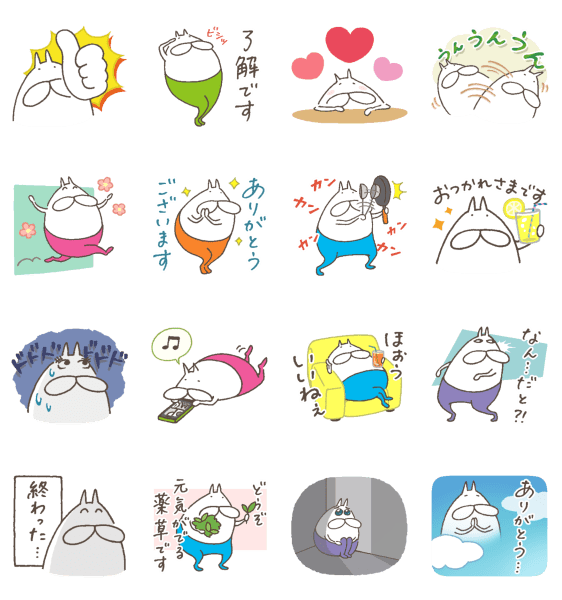 「ねこタイツ」は、スタンプクリエイター・くらきちさんの代表作。タイツを履いたユニークな姿が特徴の猫のキャラクターです。シンプルでポップなイラストスタイルで、日常的なユーモアや癒しを表現しています。