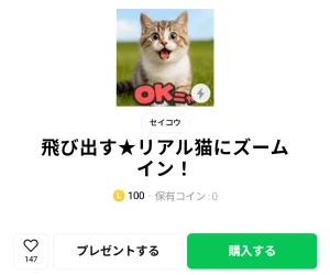 8月25日に出たスタンプ、「セイコウ」の「飛び出す★リアル猫にズームイン!」のダウンロード方法やこのスタンプの特徴を解説しています。