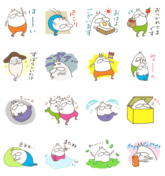 「ねこタイツ」は、スタンプクリエイター・くらきちさんの代表作。タイツを履いたユニークな姿が特徴の猫のキャラクターです。シンプルでポップなイラストスタイルで、日常的なユーモアや癒しを表現しています。
