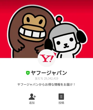 下のリンクからLINEを起動させて、「ヤフージャパン」のアカウントと友だちになると無料でスタンプがGETできます☆