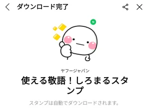 9月2日に出た無料スタンプ、「ヤフージャパン」の「使える敬語!しろまるスタンプ」をダウンロード方法やこの無料スタンプを実際にゲットしてトークに使う方法を解説しています