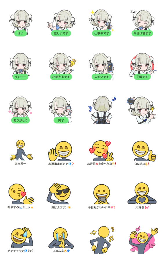 『お返事まだカナ?おじさん構文!』のスタンプだヨ! 雨衣チャンになったり、おじさんになったり!? ミンナで楽しくつかってネ!