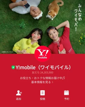 下のリンクからLINEを起動させて、「Y!mobile (ワイモバイル)」のアカウントと友だちになると無料でスタンプがGETできます☆