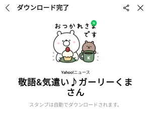 9月23日に出た無料スタンプ、「Yahoo!ニュース」の「敬語&気遣い♪ガーリーくまさん」をダウンロード方法やこの無料スタンプを実際にゲットしてトークに使う方法を解説しています
