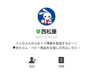 下のリンクからLINEを起動させて、「西松屋」のアカウントと友だちになると無料でスタンプがGETできます☆