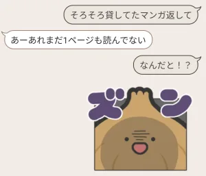 マンガのワンシーンのようなスタンプ。でも迫力よりもかわいさの方が勝っちゃってます(笑)