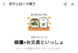 10月3日に出た無料スタンプ、「日本コカ・コーラ」の「綾鷹×お文具といっしょ」をダウンロード方法やこの無料スタンプを実際にゲットしてトークに使う方法を解説しています