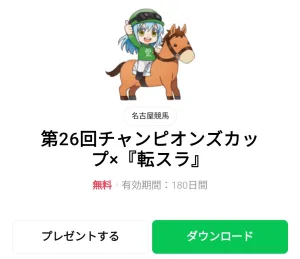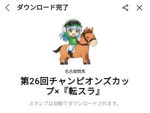 10月3日に出た無料スタンプ、「名古屋競馬」の「第26回チャンピオンズカップ×『転スラ』」をダウンロード方法やこの無料スタンプを実際にゲットしてトークに使う方法を解説しています