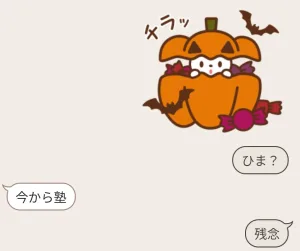 ジャックオーランタンの中から出前にゃん登場☆ハロウィンらしさを感じさせるスタンプです☆