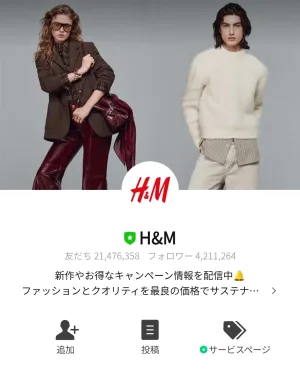 下のリンクからLINEを起動させて、「H&M」のアカウントと友だちになると無料でスタンプがGETできます☆