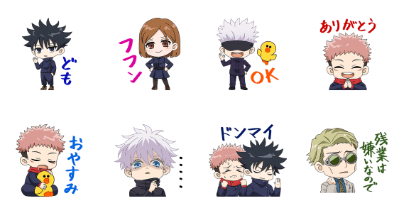 虎杖悠仁をはじめとした呪術高専の面々のかわいいデフォルメスタンプをお見逃しなく♪