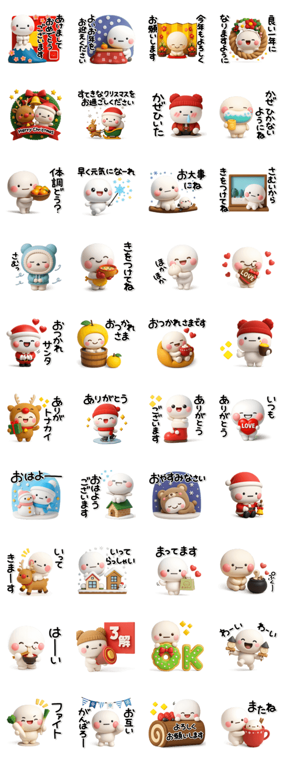 冬に使えるスタンプです。どなたでも使える内容を揃えましたのでスタンプ初心者の方にもオススメです。年賀/クリスマス付き
